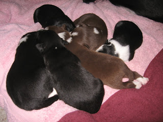 I tried to take some pictures of the puppies, but there really isn't anything to "capture" yet on film. They just sleep and eat and make cute noises. I would love it if someday Brad and I were able to take care of puppies and sell them. It's something I am definitely interested in. Here are a few pictures and you better enjoy their cuteness!
